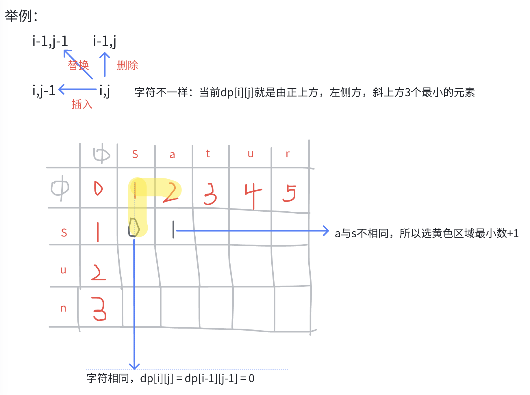 - 替换:dp[i][j] = dp[i-1][j-1] + 1