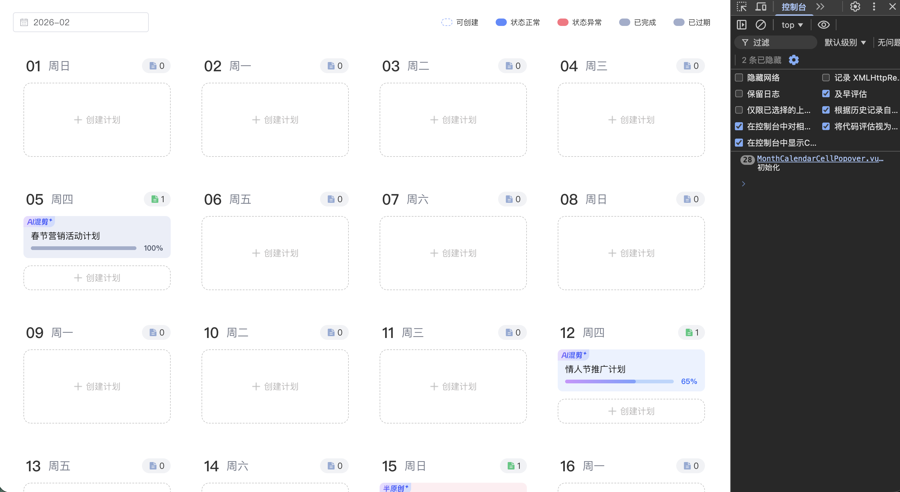 我们有一个月视图日历:一屏会渲染整月的大致 30 个日期格子(MonthCalendarItem),每个格子里有一个「计划列表」区域;用户 hover 到有计划的格子 时,会弹出一个 Popover,展示该日期的发布计划详情(MonthCalendarCellPopover)。