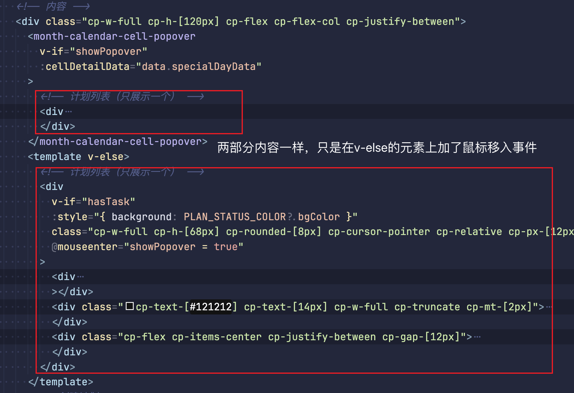 但是由于组件是在初始化加载的,一个日期就会 mounted 挂载一次,即使我当前日期是不允许hover或当前日期数据为空的时候,就不需要展示外层 Popover。